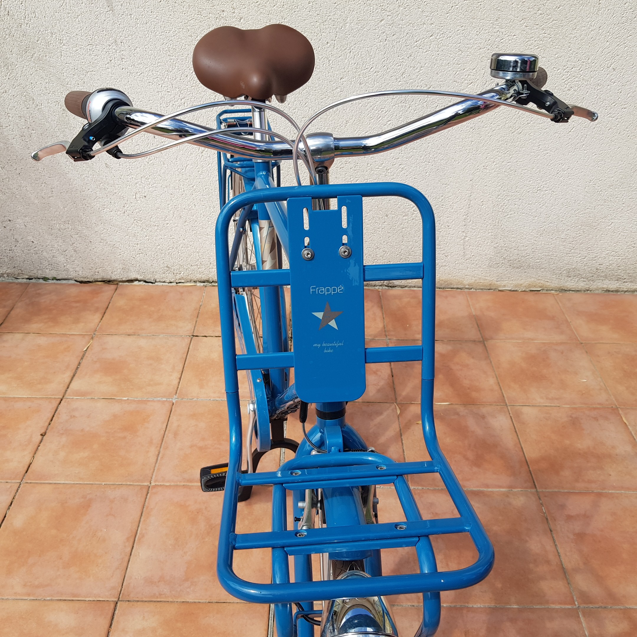 Vélo de la marque « Frappé ». Un vélo agréable et original. Une belle qualité de construction et des finitions soignées (les cables argentés représentent un "must")