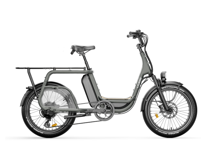 Une charge utile de 180 Kg maximum (hors poids du vélo) et une capacité de 60 Kg maximum sur le porte-bagage. Idéal pour un usage familial, il est équipé d'un porte-bagage arrière avec 2 emplacements pour transporter 2 personnes (adultes et/ou enfants) ou plusieurs sacs et colis volumineux. Il est également possible d'installer un rack avant pour un rangement supplémentaire. Le Jumbo pèse 32kg sans batterie.